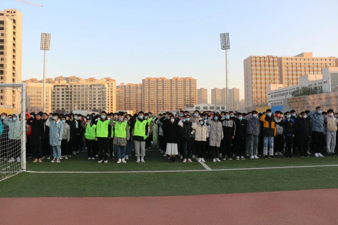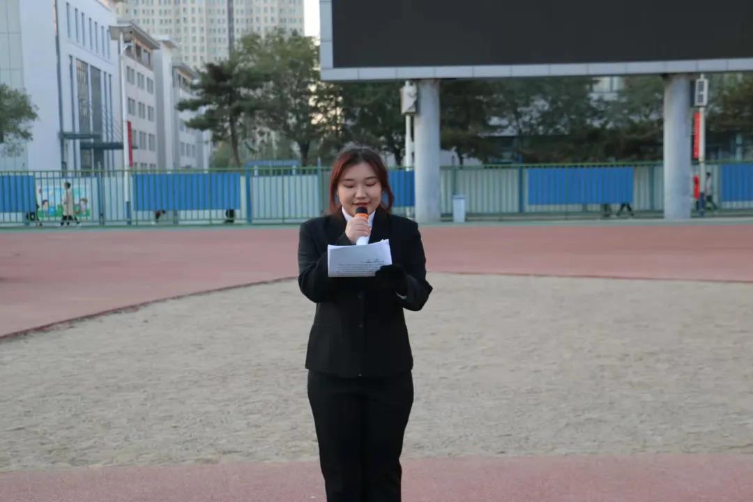 清晨6:30,参加升旗仪式的全体同学准时到达活动中心集合列队后前往体育场参加升国旗仪式。随后,国旗护卫队飒爽英姿,步伐铿锵有力,口号响彻云霄,在全体同学的热切注目下迈入田径场。他们喊着响亮的口号,唱着激昂的军歌,护送着那面鲜艳的五星红旗。最后,庄严的义勇军进行曲奏响,随着国旗缓缓升起,在场人员集体高唱国歌,注目礼致敬国旗,鲜艳的五星红旗飘扬在碧蓝的天空中。