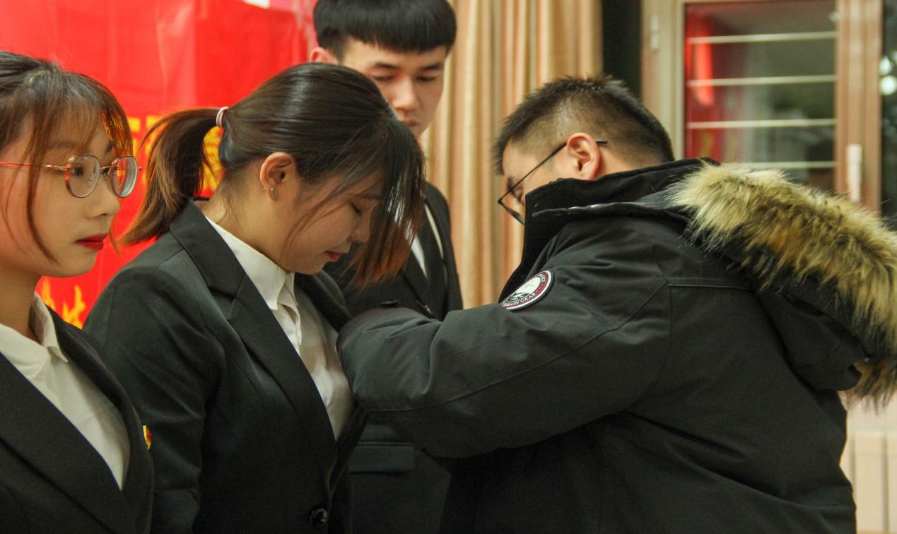 太阳集团122cc员工第三党支部书记古琛同志为新发展党员佩戴党徽