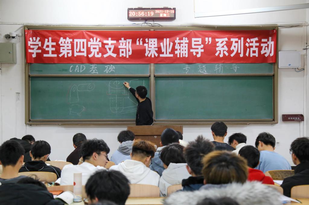 经过前期的认真准备,12月14日起,员工第四党支部组织德才兼备、品学兼优的4名员工党员,利用晚自习时间对2021级100多名员工进行了期末考试课业辅导帮扶活动。荣获宝钢奖学金,目前保送至西安交通大学,能源18-3班唐予豪同学为同学们讲解了《工程制图与CAD基础》的难题和易错题;荣获国家奖学金,目前保送至大连理工大学,能源18-1班陶峰、能源18-1班黄嘉文为同学们讲解了《高等数学》典型题型的解题思路和办法。能源19-1班陈明、徐浩对基础较差的同学进行“一对一”帮扶,面对面讲解例题,直到同学们听懂为止。