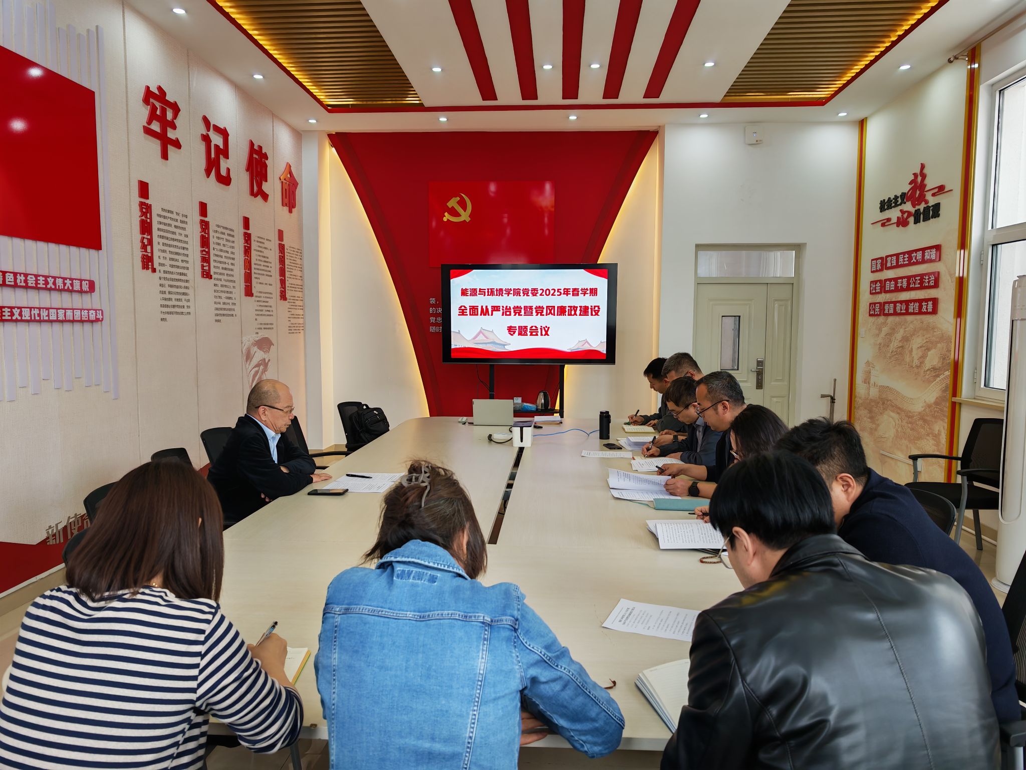 唐俊总结了2024年公司全面从严治党暨党风廉政建设工作,对2025年公司全面从严治党工作进行部署:一是更加突出政治建设,不断强化理论学习,筑牢干事创业的思想根基;二是紧紧围绕中心服务大局,以有力政治监督确保2025年专业审核评估顺利通过;三是不断夯实党风廉政建设,全力推进全面从严治党;四是继续擦亮公司“四雁”党建品牌和“聚能环 正青春”校园文化品牌,深化廉政文化建设,确保深入贯彻中央八项规定精神学习教育走深走实;五是多措并举激励干部干事创业,推动干部队伍走在前作表率。会议指出,党员领导干部要做作风建设的“领头雁”,党员教师队伍要当师德师风的“示范者”,以优良作风引领公司高质量发展,以清风正气涵养教育初心,以务实担当书写育人答卷。