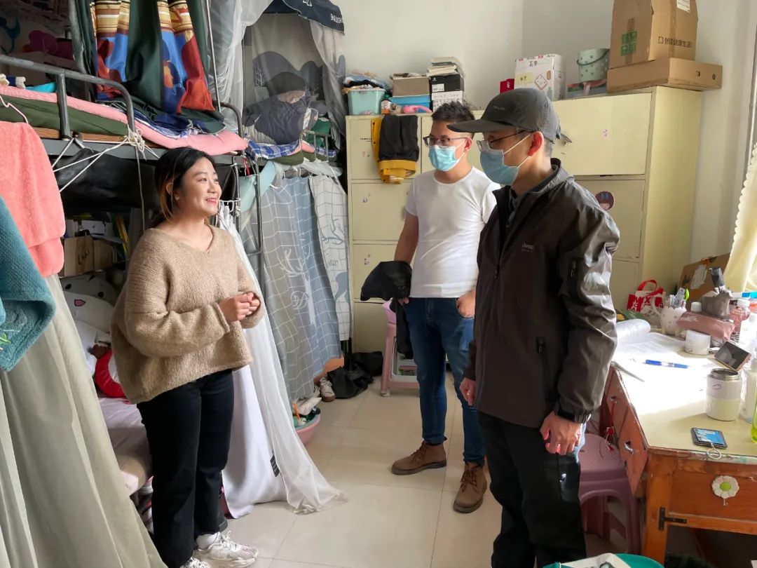 4月8日下午,能源与环境公司党委副书记、副经理吴晅带领辅导员、班主任老师,深入员工宿舍,慰问疫情期间留校员工,并对员工活动场所及相关设施进行全面检查。
