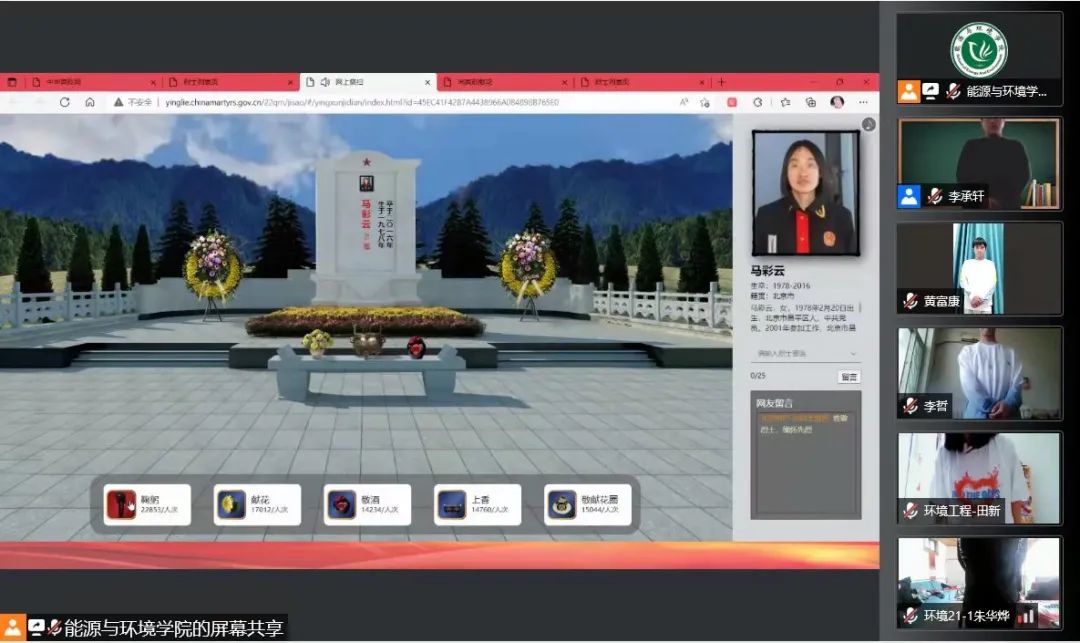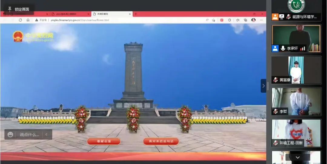 活动开始,参会人员全体起立,带着对先烈的崇高敬意和深刻缅怀,共同默哀。公司员工第四党支部党员代表王雪松、刘浩、伍阿力德图等同志先后从革命精神、抗疫斗争、参军入伍等方面分享了自己的所感所想。随后,与会同志通过集体观看英雄先烈影片走近英雄事迹。影片中既有消防战士义无反顾、赴险逆行;又有戍边战士甘做界碑,无畏坚守;更有革命烈士奋勇向前、为国捐躯。观影过程中全体参会人员纷纷有所触动。最后,全体参会人员通过中华英烈网在线上进行网上祭扫活动,为烈士们点烛祈福,书写寄语,表达对革命先烈的崇高敬意和深刻缅怀。