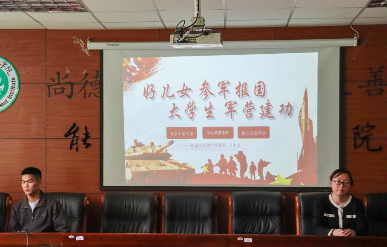 本次讲座特邀建环21-3班优秀退役老员工艾永前同学做讲座,他曾服役于武警福建总队漳州支队,服役期间参过过抗洪抢险,武装押运,地方暴恐维稳,高校军训,山区儿童扶贫等任务。他在各种任务中表现出色,获得优秀新兵,四有优秀士兵,嘉奖各一次。