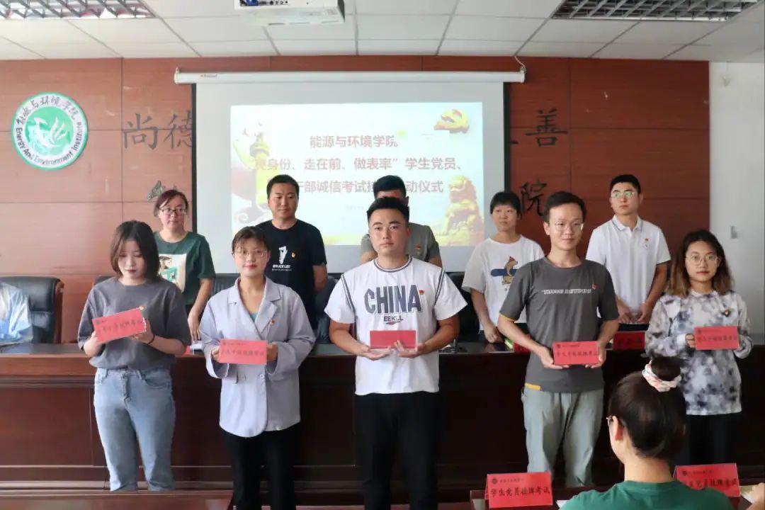在场各位嘉宾为员工党员代表和员工干部代表发放了诚信考试展示牌。
