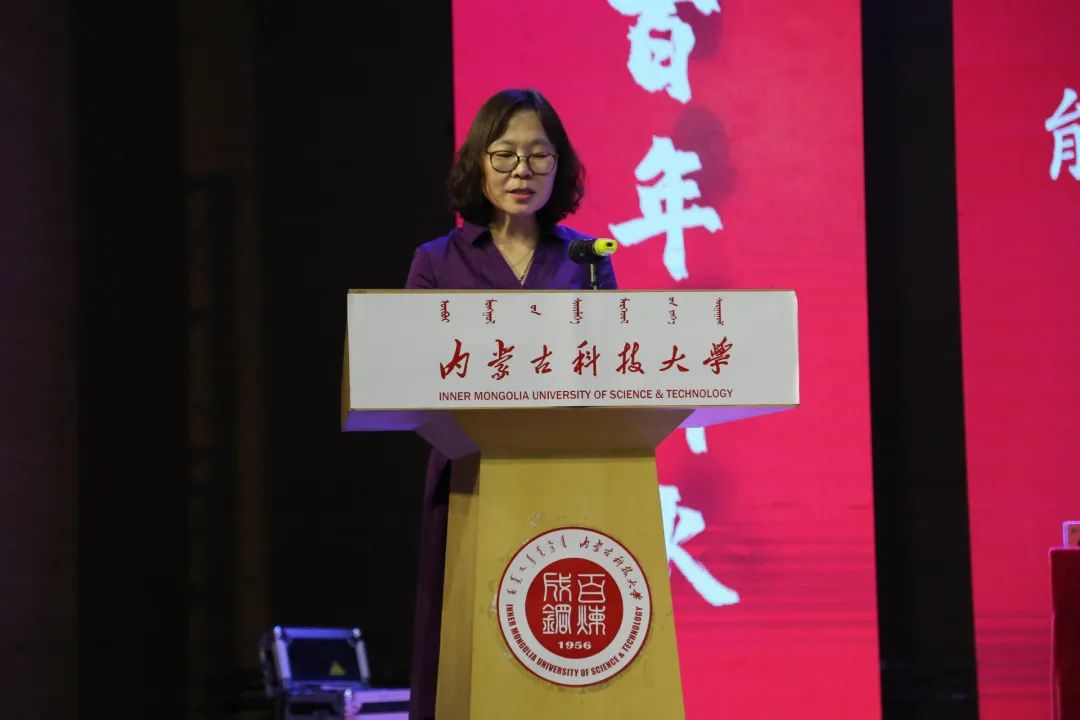 教师代表何丽娟为同学们送上毕业祝福。她希望毕业生们可以仰望星空,脚踏实地,追着光奔跑,活成自己最喜欢的样子,不负梦想,未来可期。