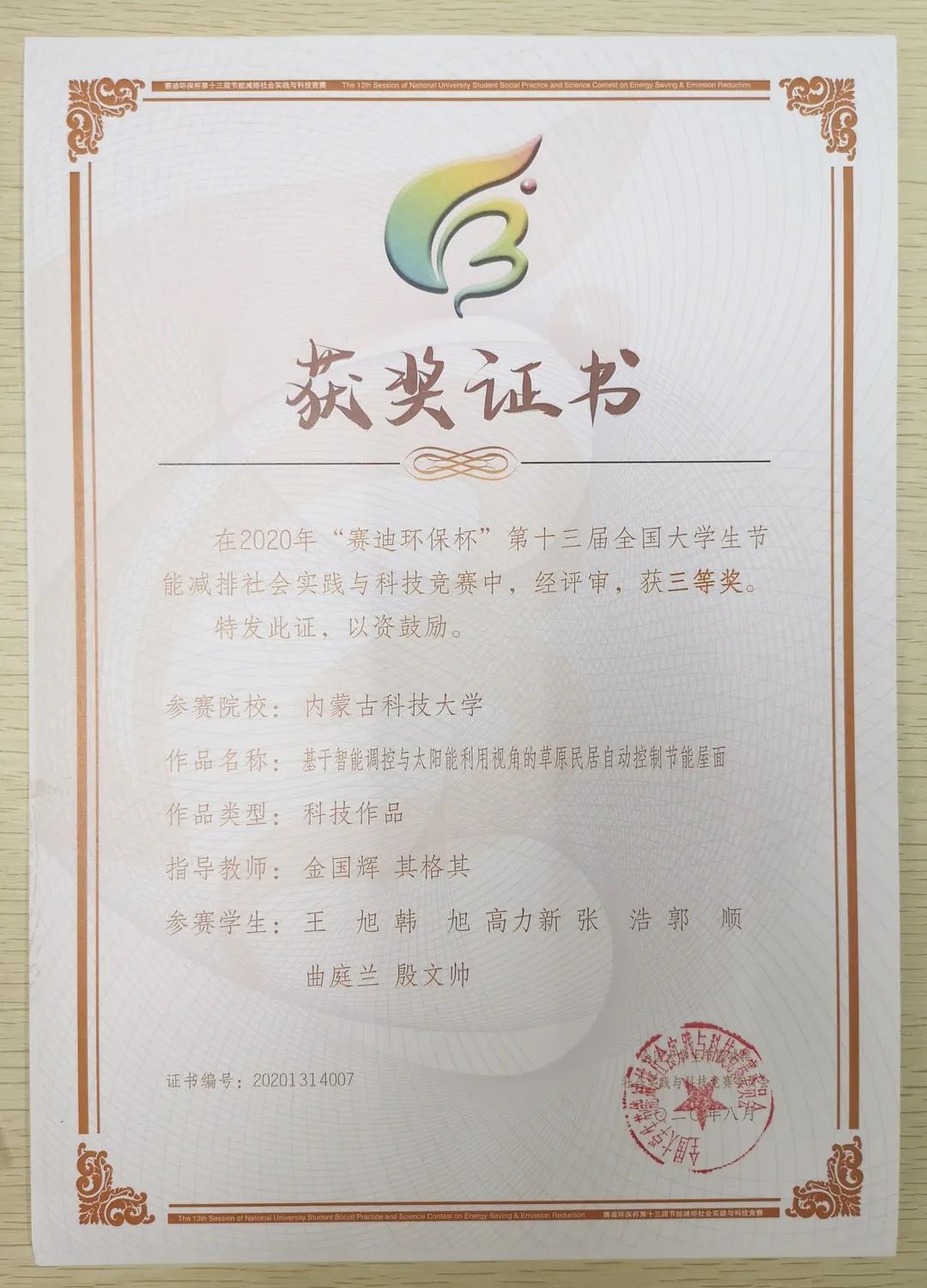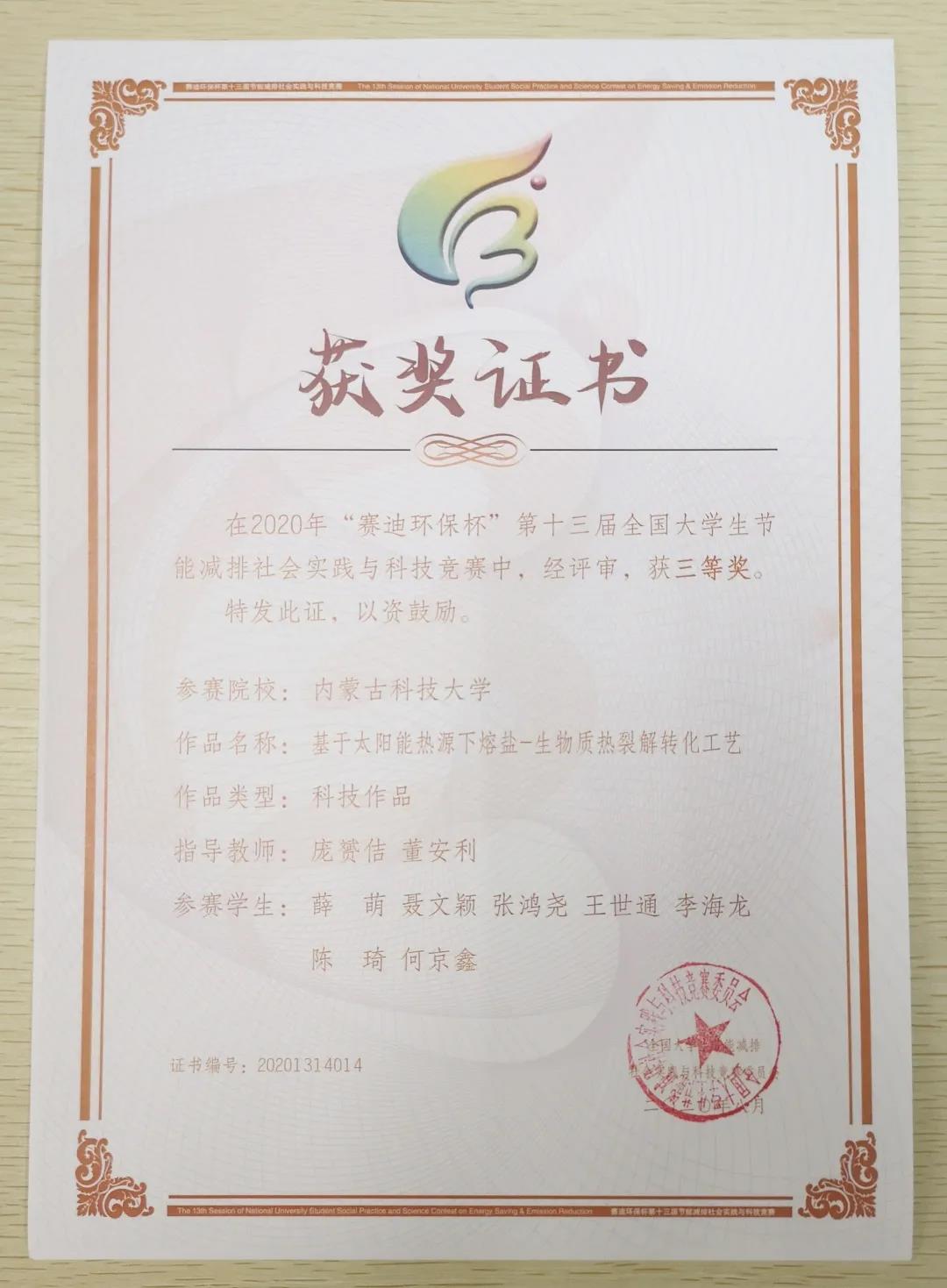 近日,由教育部高等教育司主办、重庆大学承办的“赛迪环保杯”第十三届全国老员工节能减排社会实践与科技竞赛圆满落幕。在本次大赛上,公司员工表现优异,共有6支团队荣获三等奖,其中太阳集团122cc4项作品,土木工程公司1项作品,信息工程公司1项作品,获奖作品数量创公司在此项赛事的历届之最。