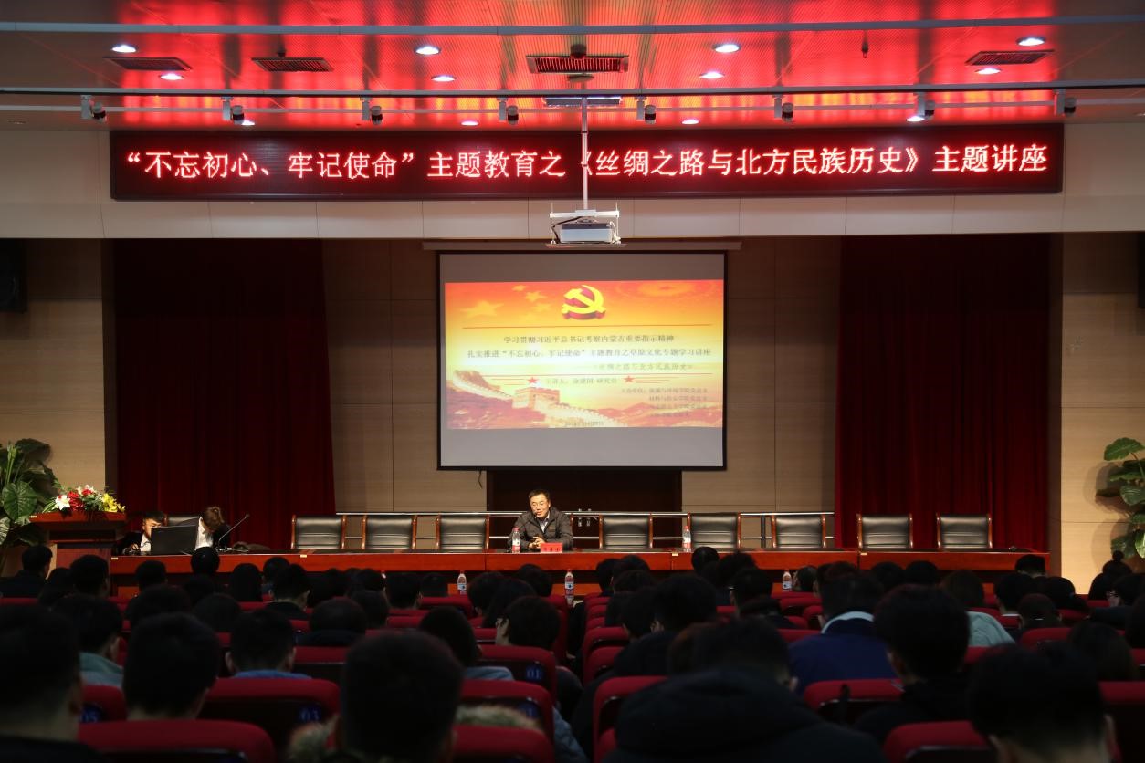 为了认真贯彻落实习近平总书记考察内蒙古时的重要讲话精神,扎实推进“不忘初心、牢记使命”主题教育,教育引导广大青年员工不断凝聚“建设亮丽内蒙古,共圆伟大中国梦”的精神力量,公司党总支联合材料与冶金公司党总支、马克思主义公司党总支、文法公司党总支共同举办了“不忘初心、牢记使命”主题教育之《丝绸之路与北方民族历史》专题讲座。内蒙古社会科公司草原文化研究所副研究员康建国应邀开讲。马克思主义公司党总支书记刘玉明、文法公司党总支书记李永林、能源与环境公司党总支书记李卫平、校团委副书记张利敏与现场同学共同聆听了讲座。