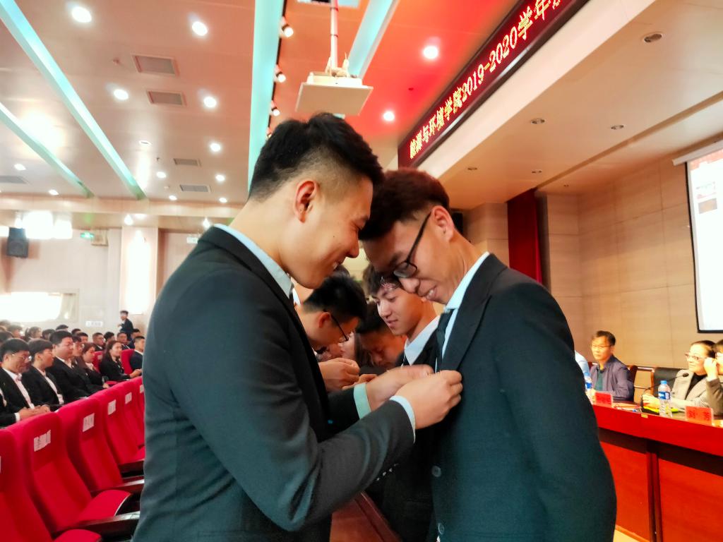 全体2018届员工干部代表为2019届员工干部代表授团旗、戴团徽,诠释了公司员工组织薪火相传、接力梦想的信念和决心。
