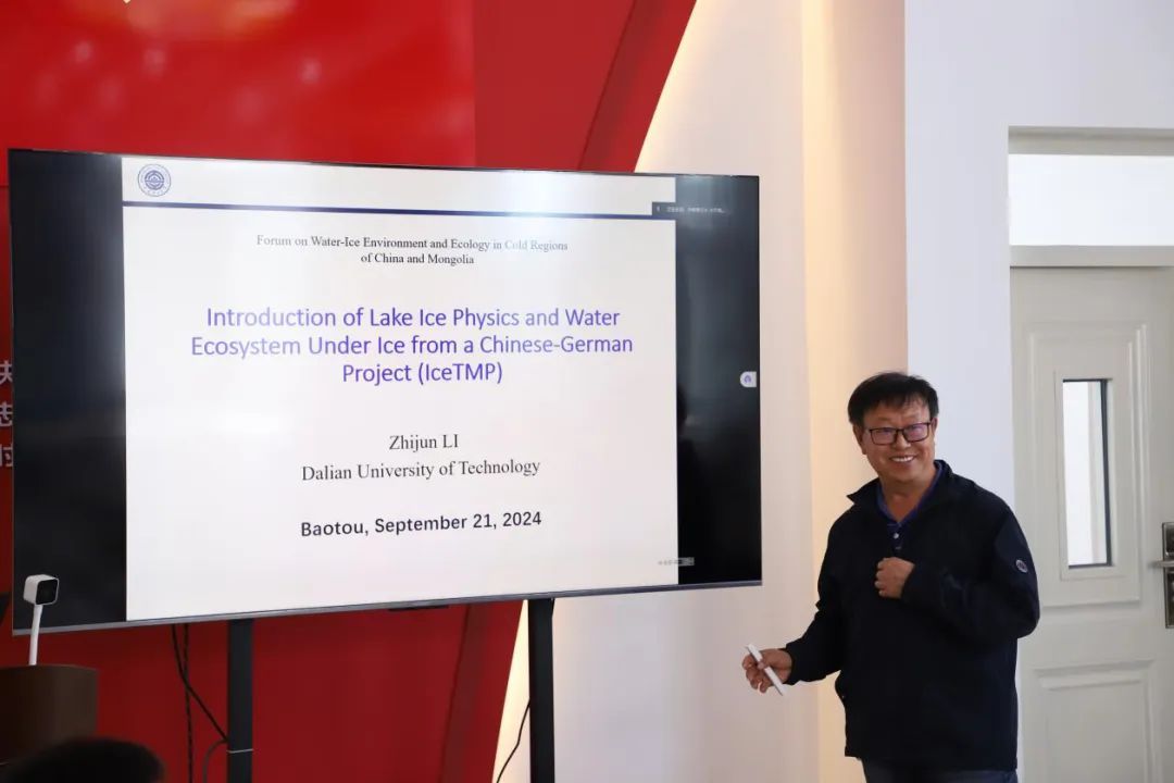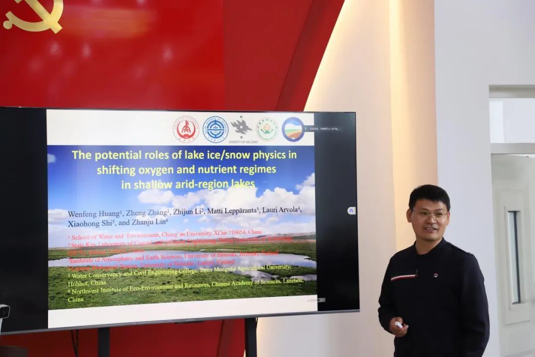 王志超副教授以线上交流的方式就太阳集团122cc黄河流域寒旱区水土环境研究中心的人员组成、研究方向、研究成果等方面做了细致的介绍,也希望同蒙方达成合作意向;李志军教授进行了中德项目(IceTMP)冰下湖泊冰物理和水生态系统的介绍;杨文焕教授介绍了三水统筹下黄河流域内蒙古段脆弱湖泊的保护与挑战;黄文峰教授作《湖泊冰雪物理在浅层干旱区湖泊营养变化中的潜在作用》的报告。