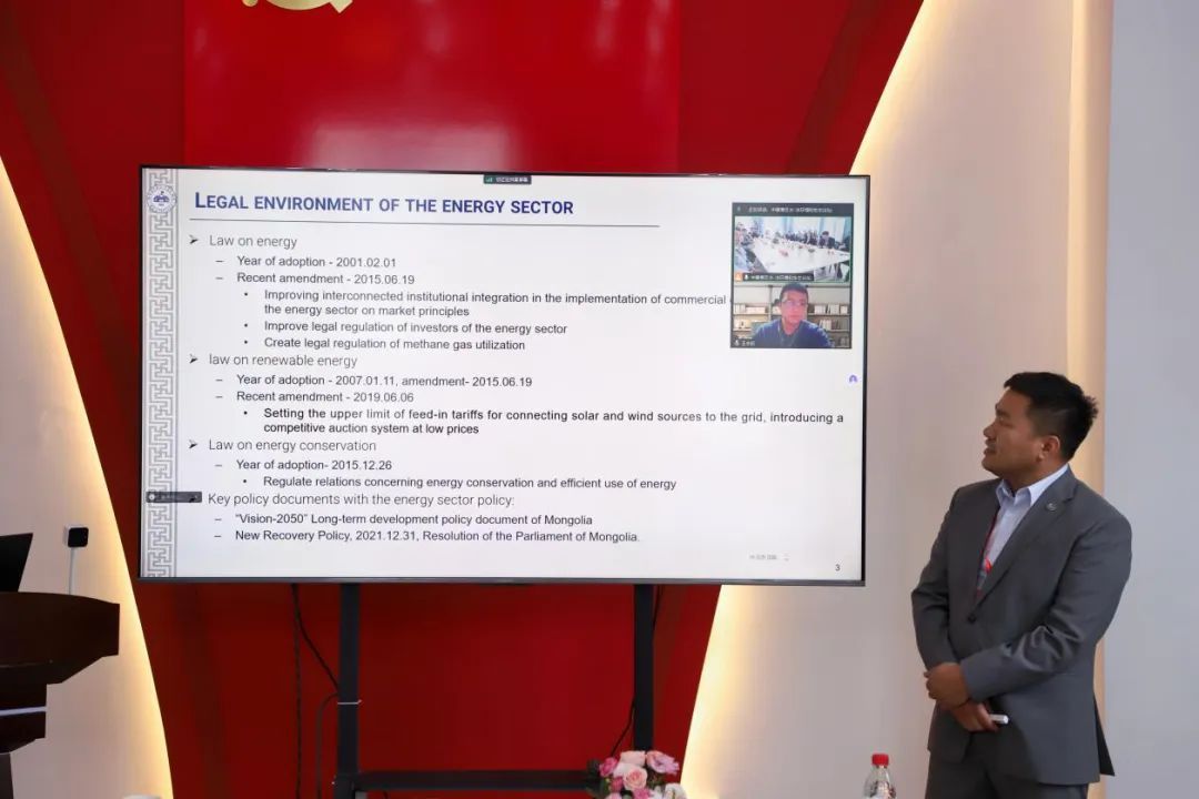 报告环节,蒙古国立大学RADNAABAZAR Chinzorig副教授以《Shelf-life extension of basic vegetables by low-energy X-ray irradiation》为题,概述了低能X射线辐照技术在延长马铃薯保质期方面的研究进展,展示了该技术的潜力及其在未来农业生产和食品储存中的应用前景;Dugarjav Bayasgalan副教授汇报了《The current state of the energy sector of Mongolian future development 》,介绍了可再生能源在蒙古国的应用现状以及未来的前景和发展规划。
