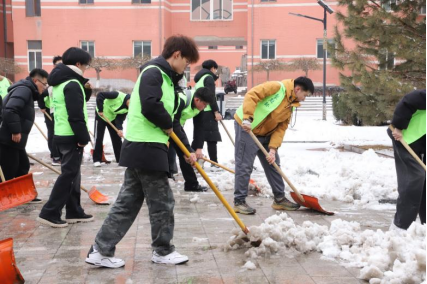 3月4日上午,能环公司百余名员工党员、团员及青年志愿者在公司团委的号召下,手持铁锹、扫帚等工具,奔赴教学楼、宿舍区、主干道等重点区域开展清雪行动。同学们分工协作、默契配合,经过数小时的奋战,校园主干道及师生高频通行区域被迅速打通,一条条“平安路”、“暖心路”在欢声笑语中逐渐显现。