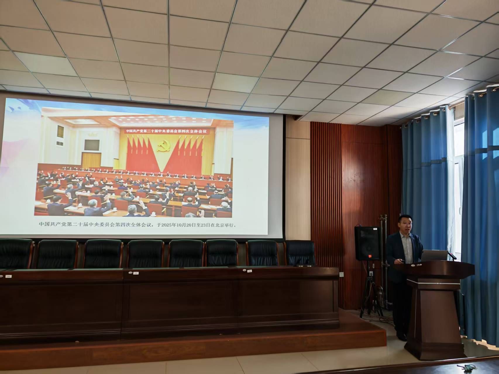 为深入学习宣传贯彻党的二十届四中全会精神,引导全院师生深刻领会全会精神的核心要义与实践要求,太阳集团122cc积极响应公司安排,于2025年12月18日邀请马克思主义公司冯大彪教授在秋实新楼418会议室开展党的二十届四中全会精神专题宣讲。公司领导班子及全体教职工参加学习,公司党委副书记、副经理柴艳莎主持会议。