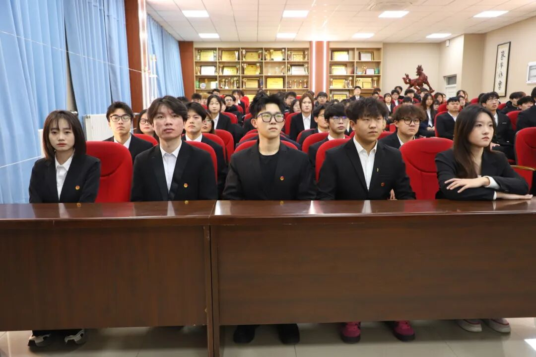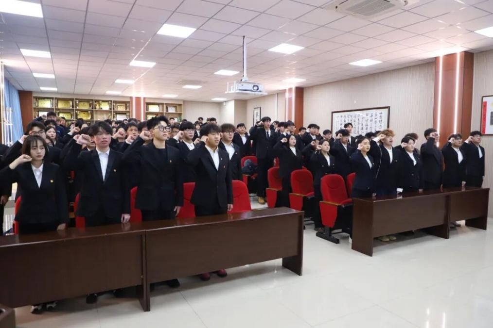 面向鲜红的团旗,全体团员高举右拳,庄严宣誓。铿锵有力的誓言响彻会场,彰显着团员们矢志不渝的信念与奋发向上的决心。