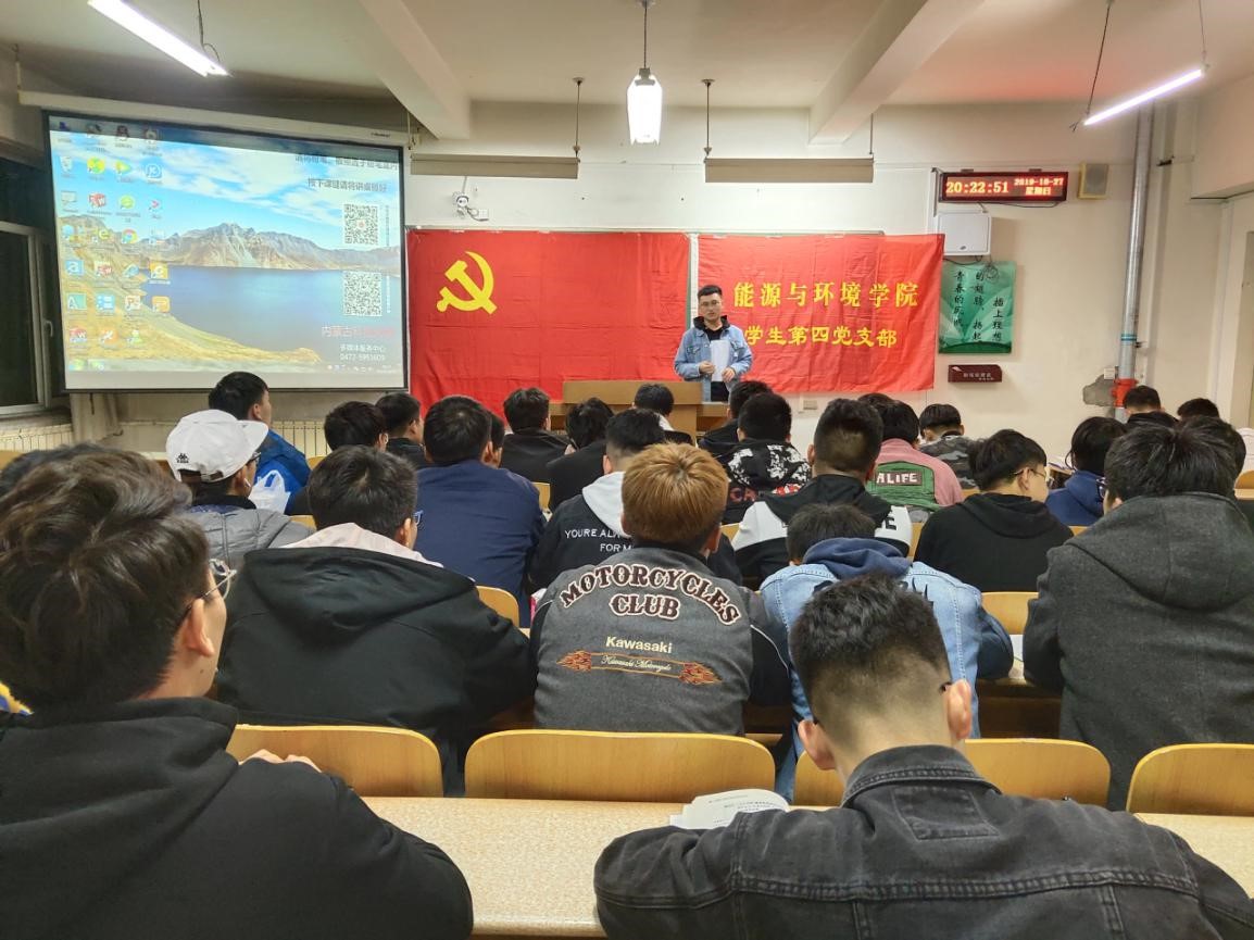 10月30日由太阳集团122cc员工第四党支部的党员王宙、黄杰,在第一教学楼E406,为全体党员和预备党员分享解读《习近平关于“不忘初心,牢记使命”论述摘编》的第二章内容,在此之后,大家一起观看了关于中国核武器研究发展的纪录片,从影片中可以体会到那些突破重重困难毅然决然回国,并在技术封锁的障碍下完成中国核武器的研发的科研工作者们身上所体现出的中华民族的气节。最后支部党员袁帅同志发言:不论身在何处,祖国只有一个,不能畏惧困难,也不能一味的依赖,要活出中国人的气概,知识总是有用的,要用量变产生质变。