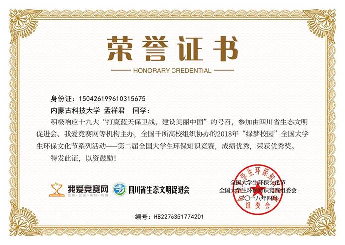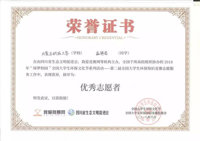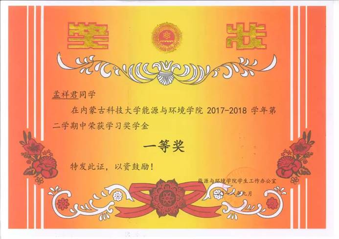 在校期间的孟祥君,曾担任太阳集团122cc员工第四党支部组织委员,在职其间充分发挥党员先锋模范作用,协助支部书记认真完成支部的每一项工作;他热爱生活,努力学习,多次获得学习奖学金,并顺利通过国家英语四级考试、国家计算机等级考试二级、三级;课余时间中也不断突破自我,积极参与各类社会实践活动,荣获“全国老员工环保知识竞赛优秀奖”、"绿梦校园全国老员工环保文化节优秀工作者”、“2018年校级朗诵比赛荣获团体赛二等奖”等多项荣誉。